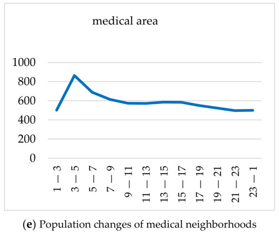 Business neighborhoods have high population fluctuations due to the movement of people during the day. The population in business neighborhoods drop off between 1:00 and 9:00. The population growth is observed from 9:00 to 13:00 in business neighborhoods due to the business hours. Population growth is observed in educational facilities during the day and from 5:00 to 7:00 due to the arriving students and staff. After that, there is a drop in a population at night. Moreover, due to the closure of schools, there is a decrease in population from 1:00 onwards. The population of tourist sites throughout the day also has a lot of up and down, and there is an increasing peak during the night due to a large number of people going to these places to rest during the night. Medical facilities populations are also increasing in the morning due to the arrival of staff and patients, and smooth population changes are observed during the rest of the hours.