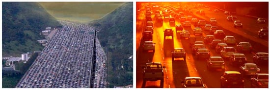 In this case, the traffic in Los Angeles, where this work was first displayed, is the worst in the world, and inhabitants of the area regularly worry about the level of toxins in the air. Looking at Figure 4, we can see morning and afternoon traffic in the San Fernando Valley. Therefore, the Particle Falls projection is simply conveying what is already widely known, and, in this case, what is already visible through the level of traffic, even if the air toxicity may be invisible. The waterfall is thus didactic and provides a clear message to the public but does not go far enough in helping them understand what can be done to improve the level of toxins in the air. The region’s environmental breakdown and overextended car use cannot be improved by citizens alone, as it requires overarching shifts in urban planning and design strategies that are the purview of the experts in the municipality.