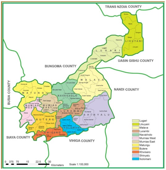 - County Government of Kakamega. Kakamega County Intergrated Development Plan 2018–2022; County Government of Kakamega: Kakamega, Kenya, 2018.