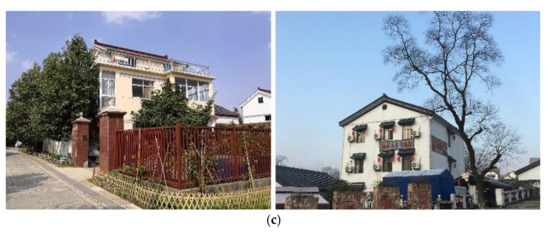 Different types of rural houses in sampled villages: (a) typical permanent vacant rural houses; (b) typical temporary vacant rural houses; (c) typical daily used rural houses. (Source: These photos were taken by the first author).