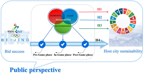 In general, the impacts of the Winter Olympic Games on the host venue are multifaceted and multidimensional, and some will even be different at different stages. These impacts can be assessed in terms of economic, environmental, and social sustainability impacts, and positive Winter Olympics impacts on urban sustainability. The staging of Beijing 2022 will undoubtedly advance the implementation of the National Strategy of Integrated and Coordinated Development of the Beijing-Tianjin-Hebei Region, making the strategy a new stimulus for China’s economic growth and social development, and setting a new model of ecological and sustainable growth of megalopolis clusters in the world. Therefore, based on the above theoretical study (background), from the public perception, we propose the following hypotheses:
