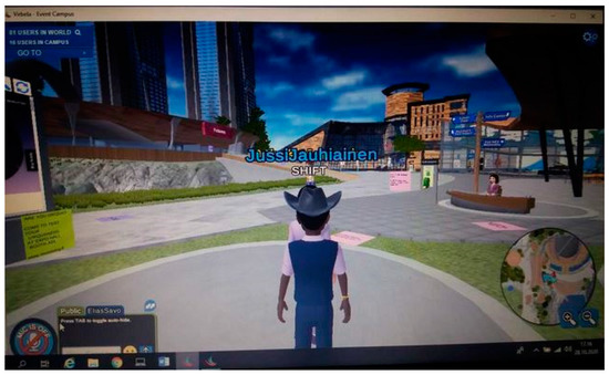 “Face-to-face” meetings between avatars had some challenges because the avatar could not express physically any detailed feelings. Bodily and facial expressions are important in face-to-face contacts to support one’s intentions and to judge better the messages [45]. An avatar could perform basic expressions such as clapping hands, making a gesture of thinking, indicating being amazed with hand or jumping from excitement, but these are far from the fine-tuned expressions of living persons. Based on the author’s observations, very few participants expressed any emotions through avatars. Initiating a conversation, i.e., approaching other avatars, was a bit more reserved than in a face-to-face meeting. However, avatars’ micro-gestures are very important. With expressions in the virtual 3D platforms, one gives and receives complementary social information in interaction [46]. Earlier studies indicate that a particularly friendly looking and smiling avatar brings a positive feeling to other participants. Through such a happy and confident-looking avatar, one can deliver the message better, even if other participants do not always consciously notice such looks of avatar [47]. An avatar’s face and micro-gestures are of great importance for successful interaction and forming a positive image about oneself in a virtual space. In addition, one could (try to) express emotions through the selection of words and voice tone when conversing with another avatar.