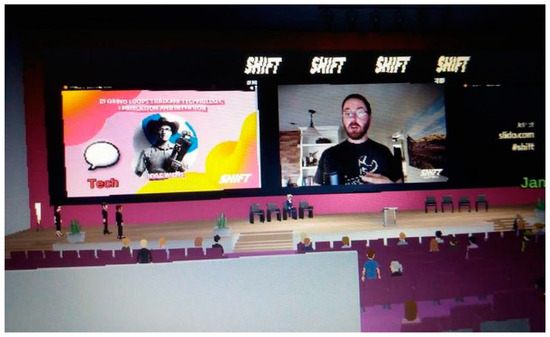 As mentioned, the basic initial procedures of the VirBELA digital 3D virtual platform at the 2020 SHIFT event were similar to many other virtual platforms. In the beginning, to attend the event, participants downloaded a free virtual platform software VirBELA (by Virbela, Bellingham, Washington, USA), opened the digital event platform (in the case for SHIFT) on the device (computer, tablet, smartphone) designed an avatar and started to attend the event by moving the avatar in the site to follow the activities and, if one wished, to interact with other participants. As in the physical event, the 3D virtual platform consisted of open and enclosed spaces, buildings and rooms structures that enabled and directed interaction [19].