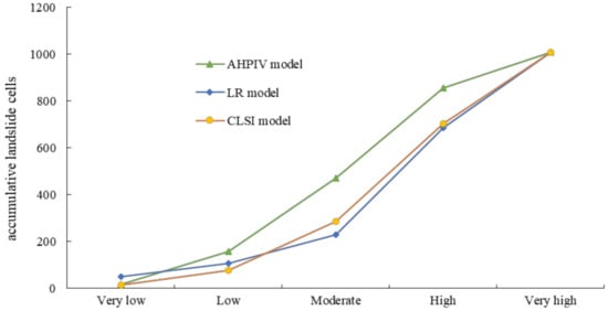 The LS maps of Zhushan County are respectively produced by the LR model, AHPIV model, and the CLSI model, as shown in Figure 5.