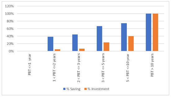 Cumulative saving and investment according to PBT classes.