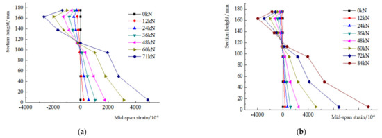 3.3. Section Mid-Span Height–Strain Curve