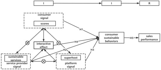 Previous studies have explored the impact of different signals on consumer behavior from the perspective of signal transmission, such as website quality, product quality and service quality [17], product price, reputation [48], and other quality clues that are related to the wishes and behaviors of customers, but the customer’s behavior is ultimately affected by the synergy of multiple signals [49]. In the sharing accommodation platform, due to the different participants, the signals are represented as platform, service provider (that is, the signals conveyed by the homeowner), and customers, as well as their interaction effects. Therefore, based on the theory of I-I-R, this research divides signals into the following three categories: platform signal (super-host certification), service provider signal (provide sustainable services), and customer signal (review scores); the research explores the above three types of signals and their interaction effects on the impact and driving mechanism of customers’ sustainable consumption behavior in the context of the sharing economy.