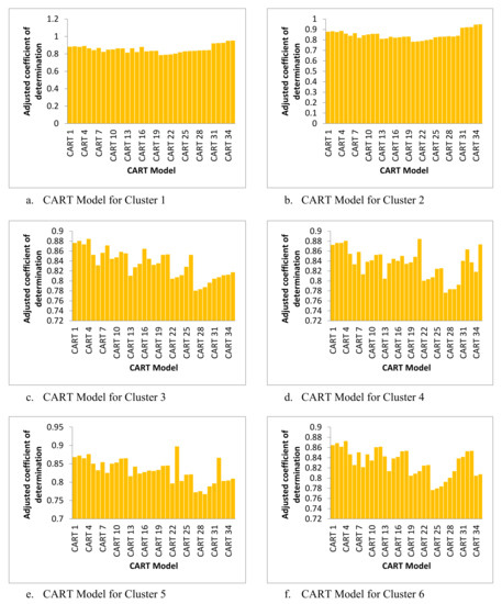 In this study, we used the coefficient of determination ( to assess all CART models through a 10-fold cross-validation approach. The approach is presented in Equation (12).