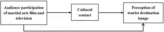 The results show the following: (1) A positive correlation exists between Wushu film and television audience participation and tourism destination image perception. This participation can enhance the image perception of tourism destinations; (2) A positive relationship exists between martial arts films and television audience participation and cultural contact. In addition, the participation of the audience can increase audience cultural contact; (3) A positive relationship exists between cultural contact and the image perception of tourist destinations. Moreover, cultural contact can enhance this perception; (4) Cultural contact has an intermediary effect between the participation of film and television audiences and the image perception of tourist destinations. An intermediary effect also exists in the three dimensions of behavior participation, emotional participation, and reference mapping of film and television audience participation.