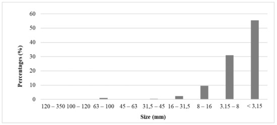 - ISO 17827-1:2016. Solid Biofuels—Determination of Particle Size Distribution for Uncompressed Fuels—Part 1: Oscillating Screen Method Using Sieves with Apertures of 3.15 mm and above; ISO: Geneva, Switzerland, 2016; Available online: https://www.iso.org/obp/ui/#iso:std:iso:17827:-1:ed-1:v1:en (accessed on 31 March 2021).
