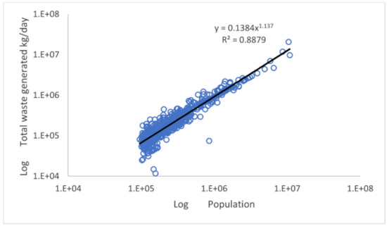 Considering the fact that urban populations will have increased by 2–3 billion by the end of the 21st century, understanding the way in which the size of cities affects the municipal waste volume can provide us with an insight into how city size can be part of a larger regional or national strategy for waste reduction [3]
