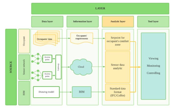- Pourzolfaghar, Z.; Helfert, M. Integration of buildings information with live data from IoT devices. In Connected Environments for the Internet of Things; Springer: Cham, Switzerland, 2017; pp. 169–185. [Google Scholar]