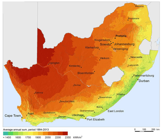 - Ramayia, J. Overview of Renewable Energy Resources in South Africa. 2012. Available online: http://www.urbanearth.co.za/articles/overviewrenewable-energyresources-south-africa (accessed on 6 August 2020).