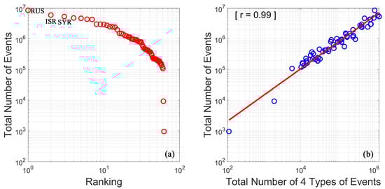 More importantly, Figure 4b showed that the number of the four types of events chosen by Zhang et al. [43] to evaluate risks is strongly correlated with the total number of events (in log-log scale). These analyses clearly indicate that directly using the number of the four types of events shown in Figure 4 is not optimal for evaluating risks. In fact, one can readily see that even if one uses other types of events to assess political risks, directly using the number of events will still be far from optimal for evaluating risks.