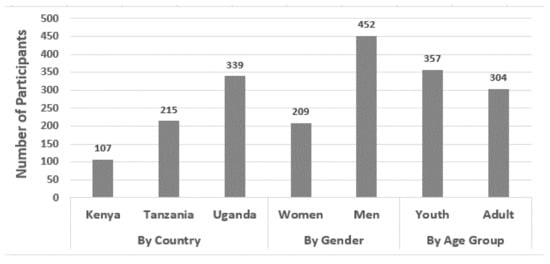 Climate change and variability are adversely impacting agricultural production, food systems and food security in East Africa [1,2]. Climate change is projected to continue to impact overall crop yields negatively by as much as 5–72% in East Africa, averaging 24.3%, depending on the crop [3]. The need to increase agricultural productivity and improve agribusiness resilience against the backdrop of increased climate variability calls for adoption of more climate-resilient, more ecologically sustainable methods of agricultural production [3,4]. This call requires concerted investments by agricultural value actors and partners to support transformational change [5]. Actionable, sustainable climate information is critical for such a transformation [6,7,8]. However, currently, and especially due to the challenges of climatic “new normal” [9], most smallholder farmers do not receive actionable climate information for effective decision-making [2].