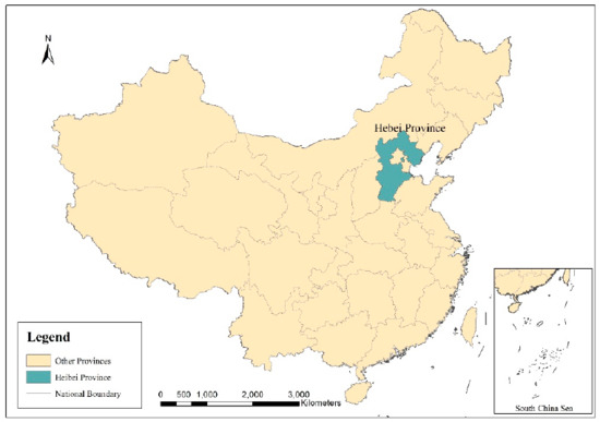 Water shortage is particularly serious in the arid and semi-arid areas of Northern China [3]. This problem has seriously affected the sustainable development of this region [3,12]. The agglomeration of industry, population and economic development have further exacerbated the shortage of water resources in arid and semi-arid regions of China [12,13]. Among them, Hebei Province is a typical water-deficient area in northern China (Figure 1). In 2014, China’s per capita water resources accounted for a long time at the level of 2060 cubic meters [14]. Compared with Hebei Province’s per capita water resources that year was 144.3 cubic meters [15]. After 2015, the Chinese central government has gradually increased the supply of water resources to Hebei Province through water transfer across river basins. However, in 2018, the per capita water resources in Hebei Province was still only 217.7 cubic meters, about 10% of the average level in China. According to Table 1, The water shortage in Hebei Province is more serious than those water-scarce regions in Europe, such as Poland and Malta. Due to its perennial unreasonable development and utilization of water resources, its water shortage problem has become more serious [16].