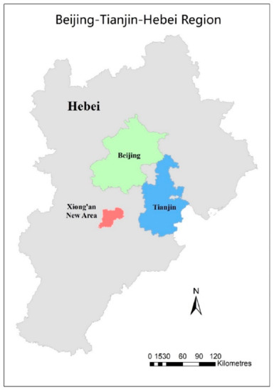 In addition, due to its geographical location and functional zoning factors, Hebei Province has to guarantee the water supply security and ecological security of Beijing and Tianjin, which places more pressure on the regulation and control of its water resources [25,26]. On 1 April 2017, the Chinese central government decided to establish the Xiong’an New Area in Hebei (Figure 2). Alongside the accelerated integration process of Beijing, Tianjin, and Hebei, and the general trend of industrial transfer and upgrading of Beijing and Tianjin, will bring more severe challenges to Hebei Province’s regulation of water resources and socio-economic development [27].