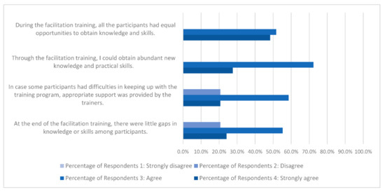 | 30 | VFT | During the facilitation training, all the participants had equal opportunities to obtain knowledge and skills. | 48.3% | 51.7% | 0.0% | 0.0% |