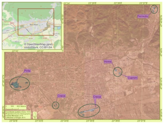 Another informal settlement is located in Baia Mare (Figure 4). It is housing an important Roma community (of approximately 1930 inhabitants) distributed in several spatial concentrations: (a). Craica, where 1110 inhabitants live in improvised and unauthorized dwellings, (b). Cuprom, a Roma community created by the relocation of families from Craica community, (c). Horea, known by the surrounding “wall” built by the mayor of the city, (d). Pirita, where the 200 Roma people live in extreme poverty and (e). Ferneziu, a Roma neighborhood organized near the former Romplumb factory [55].