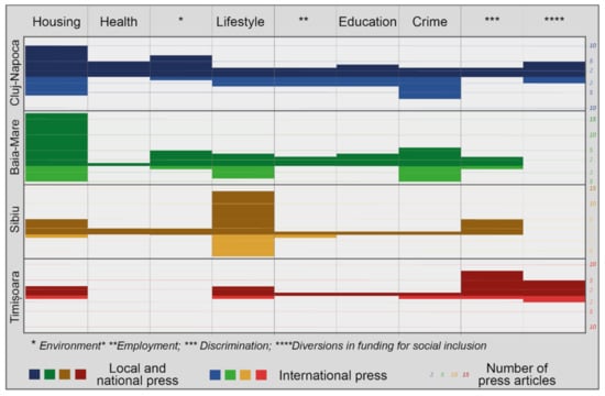 - the international news articles predominantly outline problems of the same communities analyzed by the national media, particularly those located in Cluj-Napoca (n = 25) and Baia Mare (n = 16);