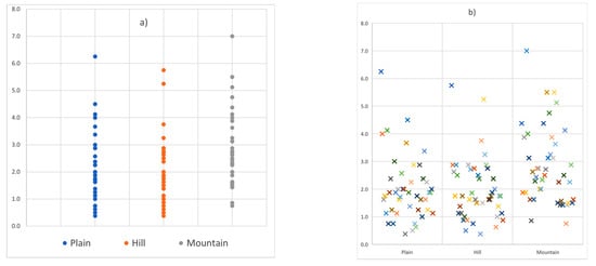 Needs identification typically occurs after the release of EU legislation provisions. In this case, the requirements are still being defined. Still, it is logical to assume that they will be based on the policy briefs and SWOT analysis drafted by the National Rural Network, already transmitted to the European Commission []. The process is likely to be akin to the one used by the managing authorities in developing the 2014–2020 RDPs to identify needs, subsequently synthesised and compared with the SWOTs defined from individual policy briefs. Since the needs continue to be discussed by the technical panels of the Ministry and the regional authorities, only the thematic areas within which the needs nest are reported here. The final version will be available in the coming months and will be a progressive object of this research. Environment and climate, rural areas, technical assistance, competitiveness, and knowledge represent four of the themes, while a fifth and transversal area relates to needs identified as representing recovery and reconstruction actions linked to the 2016 central Italy earthquake. To acknowledge the potential for asymmetry due to the highly heterogeneous territorial conformations, agronomic techniques, and productions within the Italian agricultural sector, a proxy scheme was developed for these variations. Specifically, participants were asked to assign their points while referring each requirement to an area (Plains, Hills, and Mountains). This areal distinction prevented regions with distinctive territorial features from being aggregated when considered within a national average by allowing for the same need to differ in scope within a specific territory. Participants were simultaneously asked to indicate the critical points of the different schemes on three dimensions—items on the list, number and value of the dots, and usability of an Excel® spreadsheet as a vote collection tool.