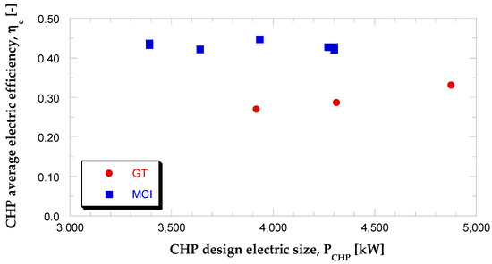- The electric size of the installed CHP units was between 3.4 MW and 4.9 MW, with an average value equal to 4 MW.