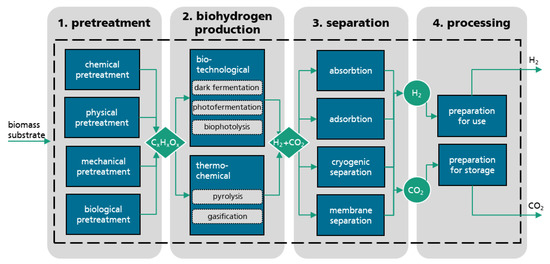- Mishra, P.; Krishnan, S.; Rana, S.; Singh, L.; Sakinah, M.; Ab Wahid, Z. Outlook of fermentative hydrogen production techniques: An overview of dark, photo and integrated dark-photo fermentative approach to biomass. Energy Strategy Rev. 2019, 24, 27–37. [Google Scholar] [CrossRef]