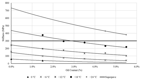 - The temperature was more significant in affecting the different assessed parameters such as the fatigue parameter, stiffness, PG, and stresses compared to the oil content. However, the oil content was more significant in the results of the LAS test as obtained from the ANOVA tests.