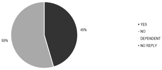 Panelised systems have been subject to increasing levels of interest within the construction industry and previous studies suggest it had a future, however, the respondents in this study appear to differ from these assessments [1,9,23]. Figure 6 shows the respondents’ opinions on whether offsite manufacturing is the future of the construction industry. Overall, 45% of respondents replied that it was and the remaining 55% disagreed. Justification of their responses identified panelised systems as having more of a future for small housebuilding developers than volumetric techniques which the NHBC (2016) and RICS (2018) also recognized [4,13].