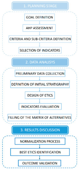 The protocol adopted is structured according to the logic of multicriteria analysis methods [41,42] (MCDA, Multi Criteria Decision Analysis) which allow to support choices in problems influenced by different decision variables and different alternative solutions.