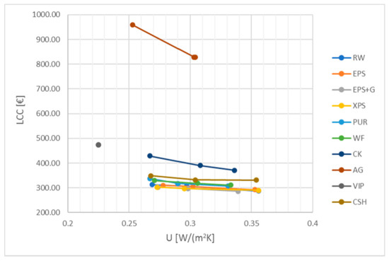 Life Cycle Cost (LCC) values as a function of U transmittance.