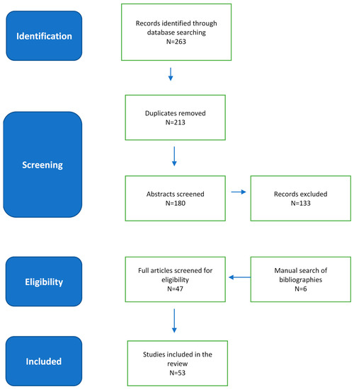 A total of 263 articles were generated from the electronic search. There were 50 duplicates, and the rest were screened on the title level. Further screening of the abstracts yielded 180 articles, of which 47 articles were deemed relevant and included in the study. Additional six studies were included from manual search of bibliographies. Figure 1 shows the PRISMA (Preferred Reporting Items for Systematic Reviews and Meta-Analyses) chart for the search. Table 1 summarizes the utility of elevated NLR among patients with AIS. (Main papers in this reviews are listed in the Supplementary Material Table S1).