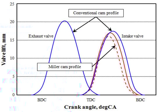 - Wang, Y.; Lin, L.; Roskilly, A.P.; Zeng, S.; Huang, J.; He, Y.; Huang, X.; Huang, H.; Wei, H.; Li, S.; et al. An analytic study of applying Miller cycle to reduce NOx emission from petrol engine. Appl. Therm. Eng. 2007, 27, 1779–1789. [Google Scholar] [CrossRef]