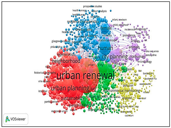 Research on theory and methodologies shows various approaches that are more likely to address the issues and result in more informed discussions. However, some methods have gaps or are insufficient regarding the correct integration of sustainable development into urban renewal. For example, cities’ growth problems include social disintegration, economic recession, environmental pollution, and urban function deterioration [3]. This study is a continuation of sustainable urban renewal research, and aims to provide a vision of scientific research progress since 2000 by analyzing the literature on sustainable urban renewal using library indicators. The h-index and the impact factor were used to assess the most productive journals and classify them according to the most cited authors and their country/institution. According to their countries and the most frequently cited articles, the different authors’ interactions were analyzed using social networks (VOSviewer). Then, specified in detail research topics using bibliometrics relating to the theme of urban renewal and sustainable development, namely: