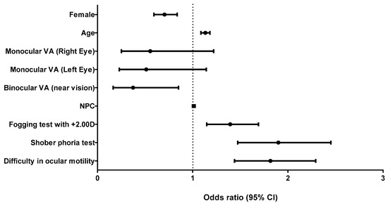 Multivariate analysis for factors associated with academic performance was made, including the poor academic performance as the dependent variable, age as independent variable, Visual Acuity (VA) and Near point of convergence (NPC) as continuous variables, and sex, fogging test, Shober test, and ocular motility as categorical variables. The analyses were performed using Stata IC v.14 (StataCorp).