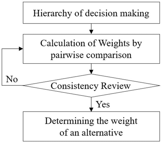 50]. Third, the consistency of the survey result is reviewed. If it has no consistency, the feedback is needed. Fourth, the weight of an alternative is determined.