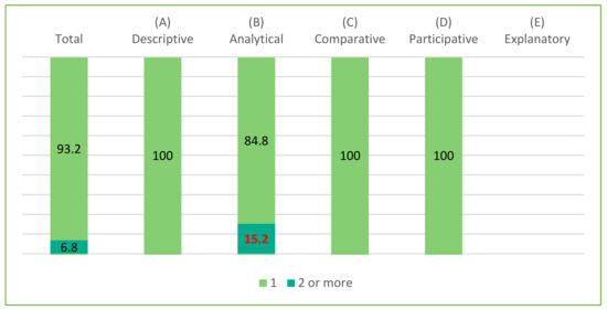 Once the sample was established (n = 74), the publications were studied. To do so, a qualitative process of clustering of articles was carried out to organise and establish categories related with the object of study of the research. After exhaustive reading of the publications, the results were recorded in a table of variables following the Descriptor for a systematic literature review on social sciences (DESLOCIS) model [49]. Although this model evaluates the publications in full, this study focuses on the variables oriented toward the analysis of the methodological body of the articles directly linked with the research questions established in the planning of the study. After the clustering process, the results were codified following the book of codes of the DESLOCIS model to develop the quantitative analysis of the selected variables.