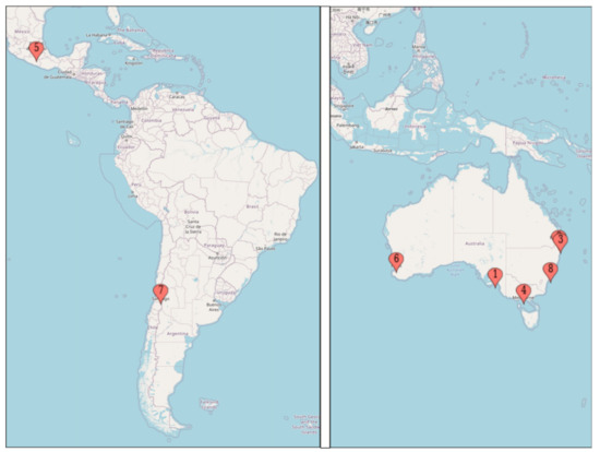 8 Cities in Central America, South America, and Australia. 1. Adelaide(T68) 2. Brisbane(T58) 3. Gold Coast(T68) 4. Melbourne(T30) 5. Mexico City(1) 6. Perth(T68) 7. Santiago(T4) 8. Sydney(T11).