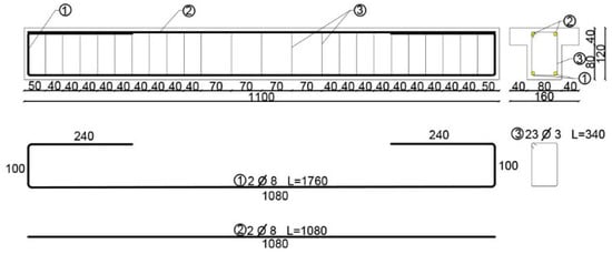 Reinforcement scheme of T-beam (mm).