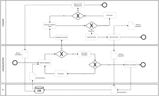 It is important to notice that a SIPOC diagram defines the so-called major processes. This means that subprocesses may also be defined for each of them. The delivery completion process was subject to further analyses. Figure 6 presents a map of the delivery making process for the case study in question.