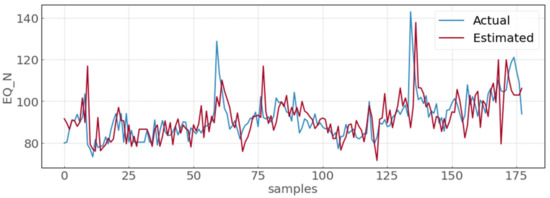 A machine learning algorithm is implemented to estimate how the change in the pH variable affected the equalizer’s nitrogen variable. Depending on the pH variable’s behaviour and the nitrogen variable itself on days past, it could estimate the new EQ_N measurement. A decision tree is the chosen algorithm. This estimation algorithm has, in total, five inputs, which are: EQ_N (t-2), OxT_PH_PM (t-2), EQ_N (t-1), OxT_PH_PM (t-1), and OxT_PH_PM (t). Figure 8 shows the result of this estimation, comparing it with the actual variable. The estimation has a slight shift because, in some days, the algorithm estimates the nitrogen remains equal to the day before. In this regard, using the Mean Absolute Percentage Error (MAPE) as a comparison metric between the actual and the estimated variables. A performance of the model equal to 7.09% is obtained. Because this model obtains a performance of less than 10% of MAPE, the prescriptive system uses it to estimate the EQ_N.