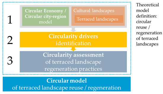 Moreover, it is possible to identify an “intrinsic” value of cultural landscapes, that is linked to their centuries-long, life-supporting ecological functions and to their “circular” organization [43,63]. This value originates in the past but today represents a strong bridge to future circular organizational models in cities and regions. The next section presents the results of the conceptualization of the circular terraced landscape regeneration framework, identifying assessment criteria and exploring current practices to define a circular model of terraced landscapes regeneration.