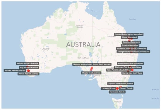 Mix design uncertainty also impacts the development of supply chain forecasts. Past research into the costs of Australian geopolymer assumes all fly ash sources, the locations of which are shown in Figure 5, are acceptable as geopolymeric material. This assumption is not accurate with current geopolymer understanding. In the Australian state of Victoria, where several coal power stations in the LaTrobe Valley burn brown coal from similar geography, the resulting fly ash varies greatly in chemistry [17,25] due to the mineralogical variances between the coal seams these stations excavate from [36]. As such, and with a mind to the minimisation of transport costs as discussed previously, a database of acceptable fly ash sources should be compiled through chemical testing or cross-referencing with past experiments to allow for more accurate transport costs and supply chains to be developed between these source locations and nearby high-concrete usage areas. Continued economic research acting under the assumption that all Australian fly ash deposits are acceptable source locations risk underestimating the cost of geopolymer, as transport costs will likely be undervalued in some cases. An important caveat to this current issue in the literature is the theory that with increased research and practice comes a likely increase in utilisable fly ash sources.