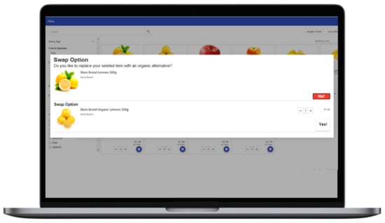 We decided to include swaps as a second use case for decision-support tools because they represent a highly transparent and, at the same time, effective recommendation agent. On the one hand, users can easily identify when, where (type-transparency), how, and for what purpose (token-transparency) swap interventions were used [62,63]. On the other hand, various empirical studies document a statically significant effect of swap interventions on consumers’ food purchases in real and virtual supermarket settings [64,65,66].
