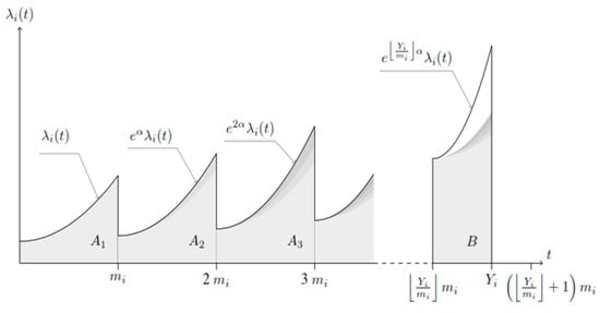 , previously expressed by Equation (7), represents the average number of breakdowns (minimal repairs) over the usage period of a vehicle of type