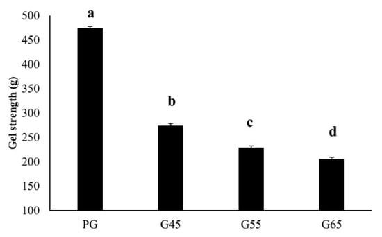 - Binsi, P.K.; Shamasundar, B.A.; Dileep, A.O.; Badii, F.; Howell, N.K. Rheological and functional properties of gelatin from the skin of bigeye snapperr (Priacanthus hamrur) fish Influence of gelatin on the gel-forming ability of fish mince. Food Hydrocoll. 2009, 23, 132–145. [Google Scholar] [CrossRef]
