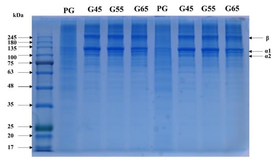 | Amino Acids (g/100 g Protein) | PG | G45 | G55 | G65 |