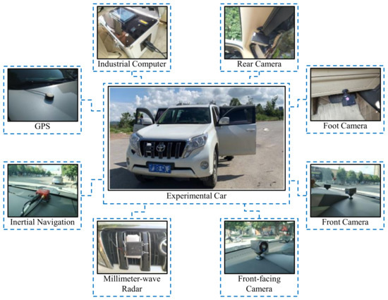 In this study, a set of vehicle-mounted integrated systems for naturalistic-driving data acquisition was developed, as illustrated in Figure 1. Throughout the experiment, the system was installed on the test vehicle to continuously collect and record the driver’s operating behavior, vehicle driving status, and road traffic environment information. The collected data included three-axis acceleration, longitudinal velocity, three-axis angular velocity, latitude and longitude, altitude, distance to the vehicle ahead, a video of the upper body and feet of the driver, and a video of the front and rear of the vehicle.