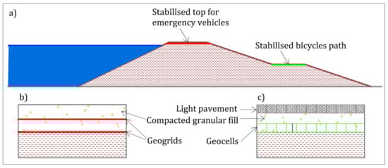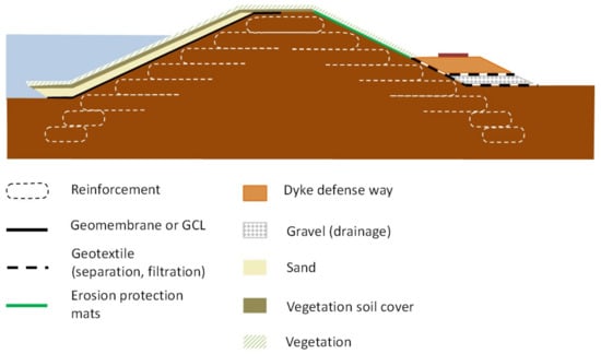 12]. As stated above, a state-of-the-art review, as the one presented in this review paper, does not exist according to the authors’ knowledge, specifically one that places an emphasis on the sustainable use of geosynthetics in dykes.