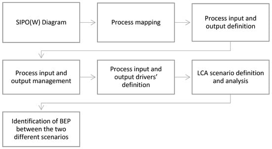 In order to develop the proposed model, the Suppliers Inputs Process Outputs Customers (SIPOC) diagram was used. Starting from that, a modified version able to integrate the waste and waste substances generated by the process was defined. This is how our SIPO(W)C diagram was born (Table 1), where the additional W within the acronym stands for Waste. This was an important addition, given that the case study involves LCA analysis and is therefore linked to environmental impacts, of which waste substances generated by the process represent an important contributory factor. The SIPOC diagram is one of the most widely used tools in the area of process improvement and optimization. The diagram is a simple tool that provides a high-level overview of a product or process using a visual form with immediate impact. All the activities of a company can be viewed as processes, which take one or more inputs from suppliers to create outputs. These outputs may include a service or a product for the customers of the company. The graphical visualization of a SIPOC diagram easily shows the business process by identifying its key components such as suppliers, inputs, process, outputs, and customers. We, therefore, use this instrument in order to provide a clear and rapid initial vision of the productive chain that we analyze in the process of constructing the model. Hence, what is presented is the SIPO(W)C diagram of the production chain that takes a metal accessory to either a galvanic or a PVD finish.